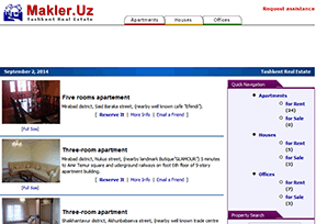 房产经纪人(Makler)是乌兹别克斯坦著名的房产信息网站,主要提供住宅、商铺、厂房、土地的投资、管理、咨询、房产中介、代理等服务,网站语言有英语和俄语两种。...