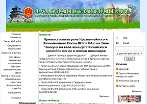 该网站为中国驻亚美尼亚大使馆(EMBASSY OF CHINA IN THE PREPUBLIC OF ARMENIA)的官方网站,主要提供使馆简介、大使信息、最新动态、中国概况、中亚双边关系、专题。网站语言有俄文、中文两种。...
