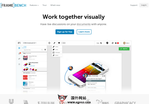 FrameBench:在线云视觉协作交流平台是一个基于云端的在线协作、在线沟通和在线反馈的网络平台,通过云房间你可以存储和分享自己的创意资源,然后可以通过客户端来远程查看和标记注释,提...