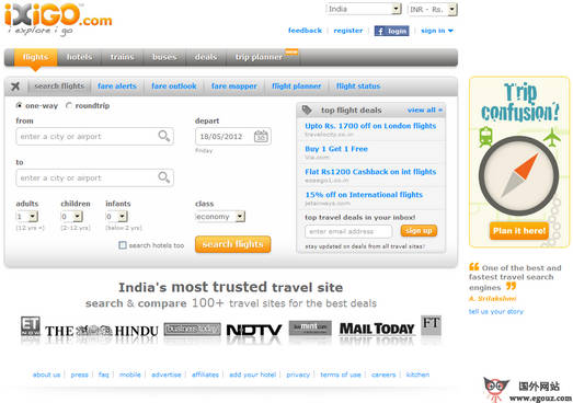 IxigGo:印度旅游搜索引擎是印度领先的旅游搜索引擎站点,iXiGO类似“旅游信息中介”,根据访客的需要为他们独立提供各项旅游和住宿的信息。...