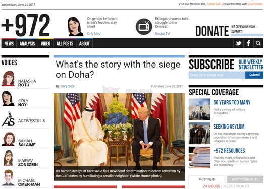 以色列+972杂志(+972 Magazine)是一个独立的且基于博客的网络杂志,由一群记者、博主和摄影师共同拥有,其目标是在以色列和巴勒斯坦提供新鲜、原创的实地报道并分析事件,该博客于2010年8月推...