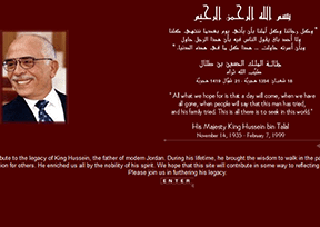 该网站为约旦政府(The Office of King Hussein I of Jordan)的官方网站,主要提供约旦概况、政府机构设置、职能简介、时政要闻、国王侯赛因一世、哈希姆家族、约旦王国的介绍以及资料中心等,网站语言为英语。约旦哈希姆王国(...
